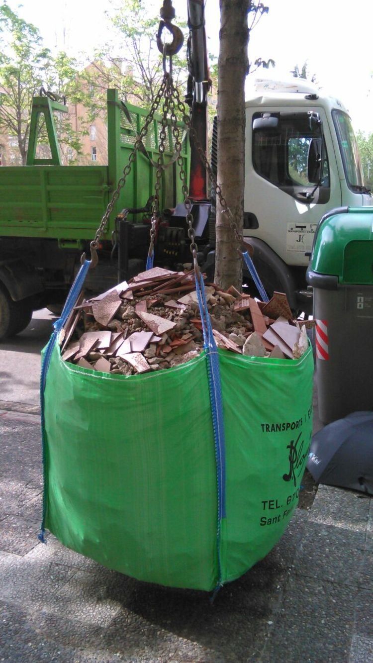 Los big bags, en cambio, consisten en grandes bolsas flexibles que sirven para la recogida y acumulación de escombros y otros residuos. Estas se pueden almacenar como paquetes hasta realizar su retirada mediante un camión con grúa.