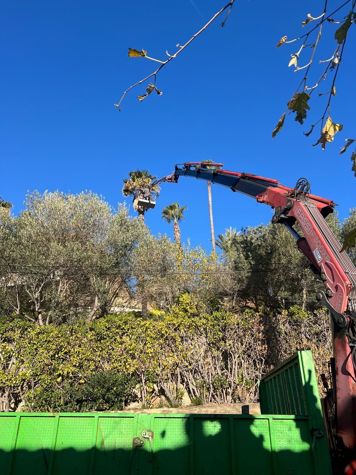 Poda de árboles con cesta elevadora